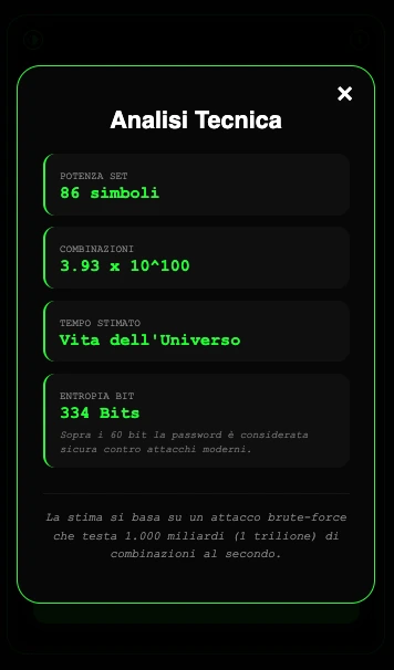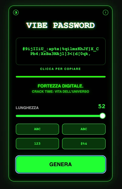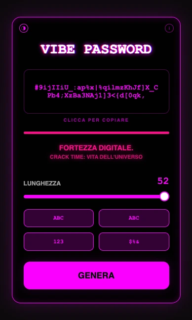 La sfida era creare uno strumento che rendesse la generazione di password complesse un'esperienza visiva coinvolgente, senza sacrificare la profondità tecnica e soprattutto "copiabile" con un click.