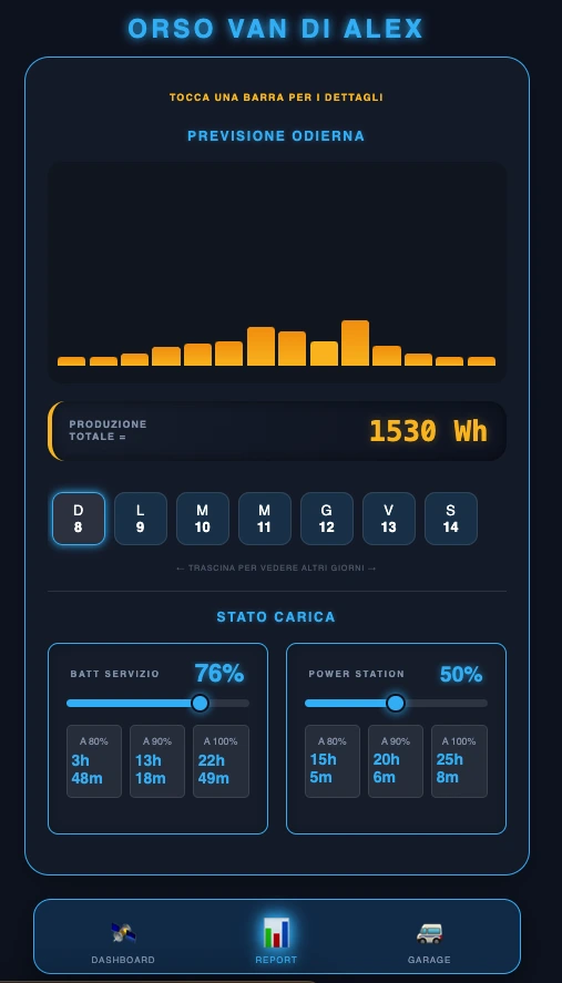 Vibe Solar trasforma dati complessi in previsioni chiare, permettendo di sapere esattamente quanta autonomia rimane nelle batterie.